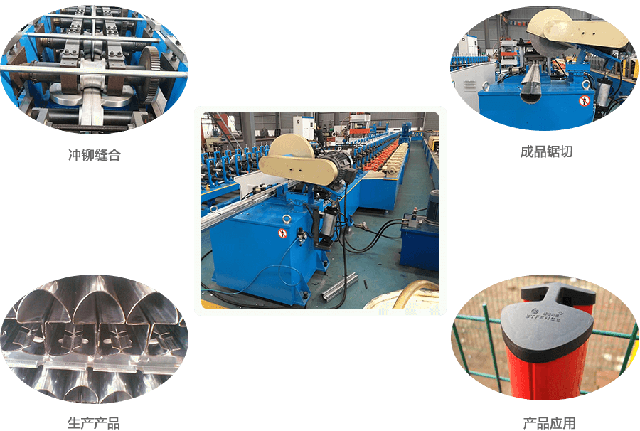 開卷—導向、輥壓成型、液壓沖鉚、液壓沖缺口—成品鋸切切斷—出料