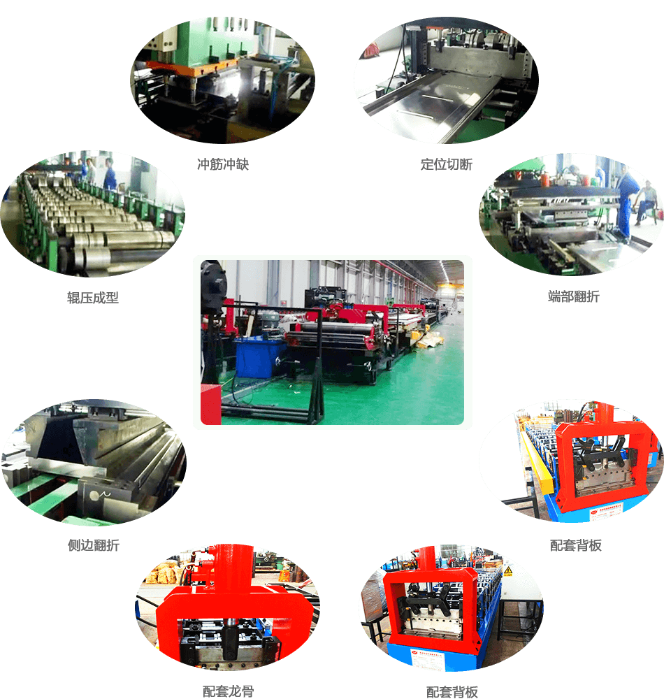 開卷—引料校平—沖孔沖缺—輥壓成型—定位切斷—端部翻折—側(cè)邊翻折—托板出料